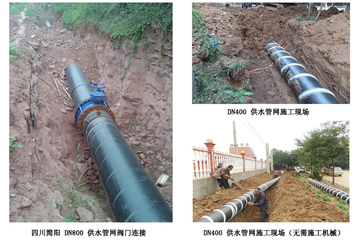 在工程施工方面,大口径膜片管也占很大优势。钢丝缠绕超高膜片管的比重约为1.2,而由于其壁厚很薄,直径可以小一号,其重量比铸铁管和PCCP管小5—10倍,搬运和安装非常轻便。超高膜片复合管的柔韧性很好,可以先在地面上连接好之后再下到管沟里,边挖沟边下管,边填埋。不用修路,不用大型机械,不用地基处理。铸铁管和PCCP管必须挖很宽的沟,管道下到沟里对正连接,受到很大局限,工程费用大幅上涨。在需要穿越江河的情况,乐玩膜片管可用沉入法在江河底敷设,也可用拖拉法从江底隧道或管道中拖曳而过,这都是铸铁管和PCCP管做不到的。