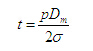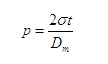 式中p:工作压力 MPa t:管道壁厚 mm Dm:管道中径 mm