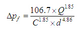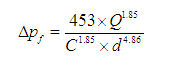 水在管道内输运时因摩阻引起的水头损失(压降)可用国际上通用的海澄-威廉姆斯(Hazen-Williams)公式计算: