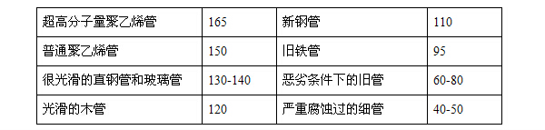 不同材质的摩阻系数如下: