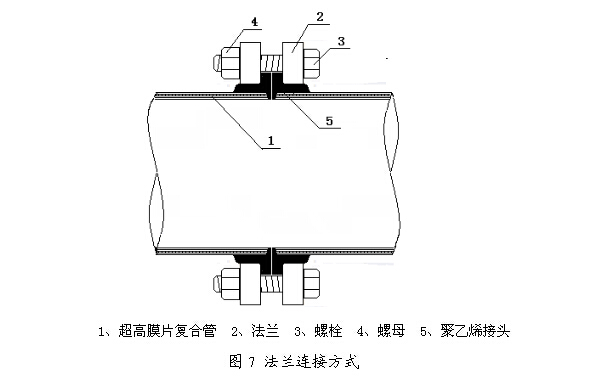 先把法兰盘套入管端,再在管材端部焊接铸造一个聚乙烯接头,即可用法兰盘将两根管材连接,见图7。